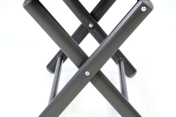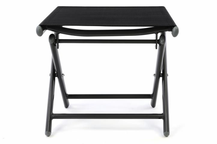 Czarny materiał tekstylny jest stabilny pod względem kształtu i koloru. Tkanina tekstylna do użytku na zewnątrz zapewnia odpowiednio wysoki komfort siedzenia długoterminowego. wygodne podparcie stopy do dopasowania. Tkanina zapewnia optymalną wentylację części wypoczynkowej, odporną na warunki atmosferyczne i niskie koszty utrzymania. Spawane szwy. Składany stołek przekonuje dzięki części wypoczynkowej, która jest bardzo przyjemna w dotyku, nie utrzymuje wody i bardzo szybko schnie.
