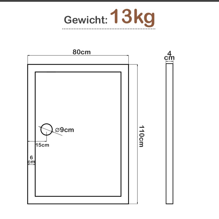 Ten konkretny model brodzika wykonany jest z solidnego akrylu i ma głębokość 4,5 cm, co ułatwia dostęp do prysznica. Stylowy i elegancki brodzik o bardzo cienkim profilu. Posiada łatwą do czyszczenia błyszczącą powierzchnię. Model ten należy podnieść 12 cm od podłogi. Montaż dwustronny - podstawa może być zamontowana zgodnie z wymaganiami.