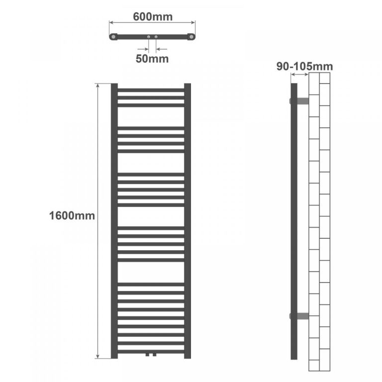 AQUAMARIN Grzejnik łazienkowy pionowy 1600 x 600 mm