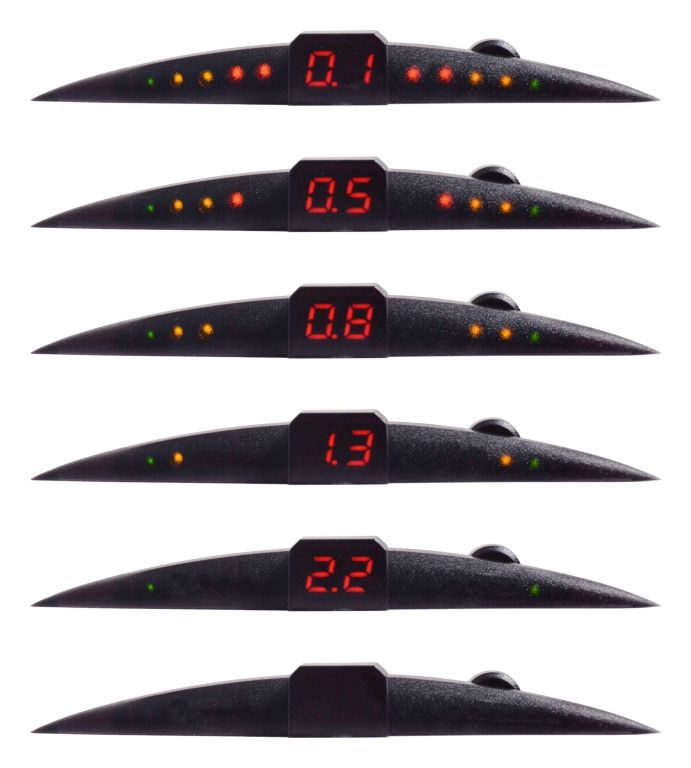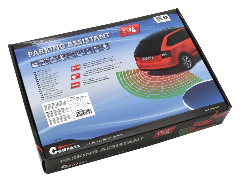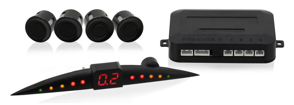 Asystent parkowania z wyświetlaczem LED i wyświetlaczem numerycznym do wygodnego wizualnego wskazywania odległości do przeszkody. Działa na zasadzie fal ultradźwiękowych przekazywanych przez czujniki w tylnym zderzaku. Aktywowany przez bieg wsteczny. Zgodnie z informacją na wyświetlaczu i sygnałem dźwiękowym, kierowca jest informowany o odległości od przeszkody, sygnał dźwiękowy można wyłączyć w górnej części wyświetlacza za pomocą włącznika. Opakowanie zawiera wyświetlacz, jednostkę sterującą, 4 czujniki do montażu w tylnym zderzaku, odpowiednie okablowanie oraz wiertło o odpowiedniej średnicy.