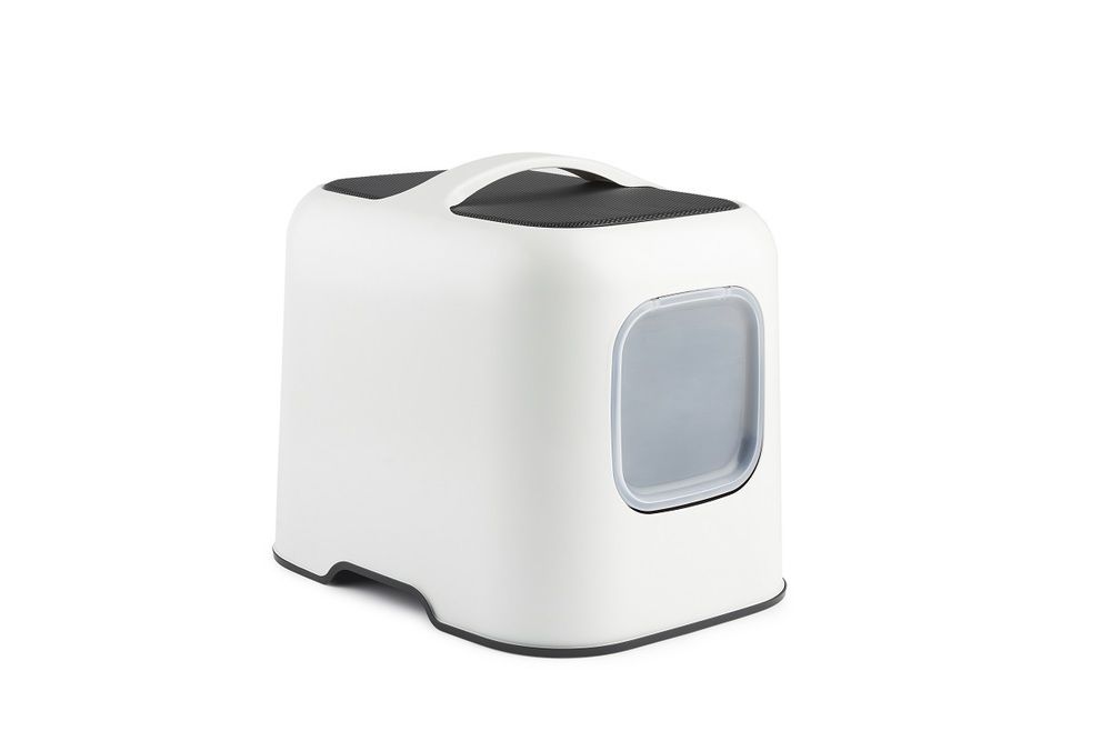 Toaleta dla kota BIALA wykonana z plastiku pochodzącego z recyklingu - Nowoczesny i funkcjonalny design - Drzwiczki z magnesem zapewniają samozamykający się system - Wygodne wejście dla kota - Zdejmowana górna pokrywa z uchwytem - Wysokiej jakości projekt Rotho