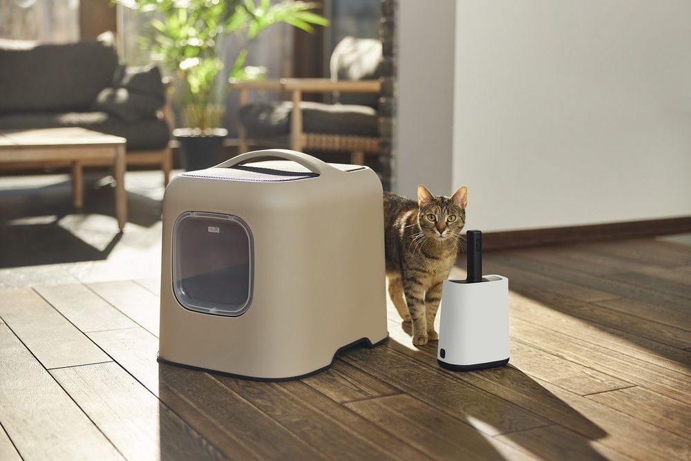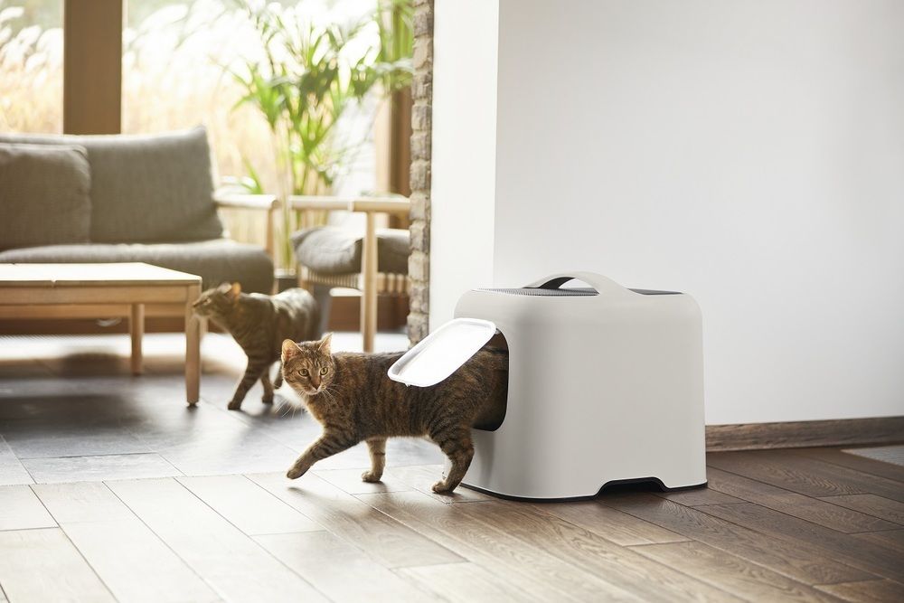 Toaleta dla kota BIALA wykonana z plastiku pochodzącego z recyklingu. Można ją umieścić w dowolnym miejscu w pokoju.