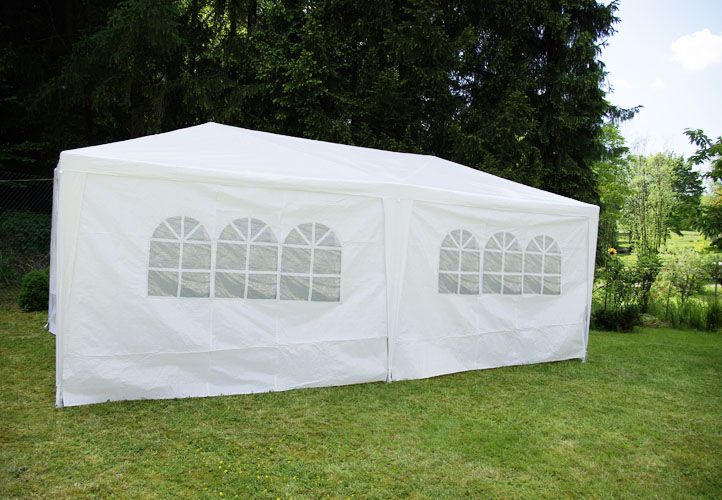 Biały namiot imprezowy o wymiarach 3 × 6 metrów to świetny wybór na letnie przyjęcia w ogrodzie lub jako sezonowy schron. Boczne ścianki z oknami wpuszczają przyjemne światło dzienne, a zamykane wejścia na zamek błyskawiczny ułatwiają swobodne wchodzenie i wychodzenie. Cała przestrzeń jest przewiewna, a jednocześnie zapewnia spokojne miejsce dla gości i wyposażenia.