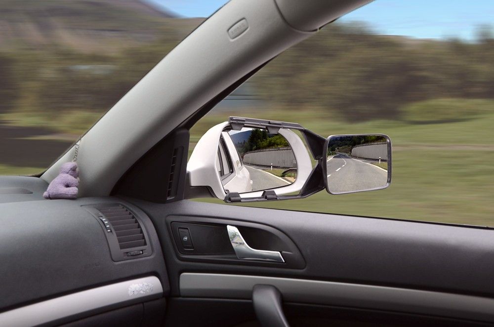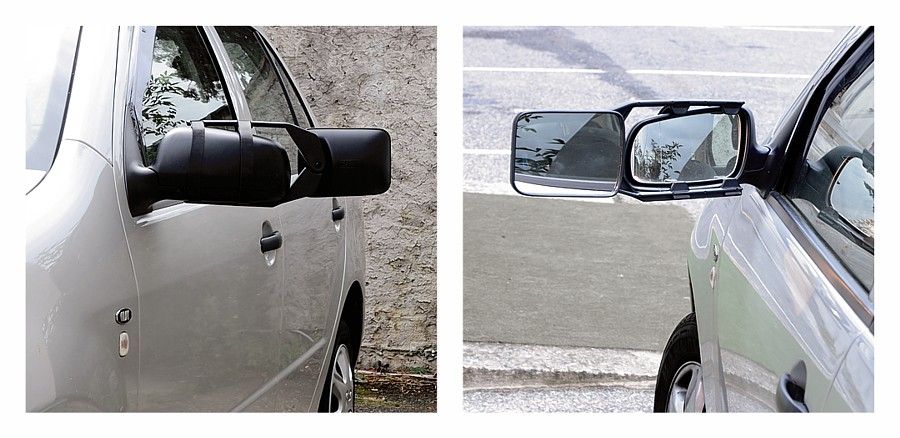 Dodatkowe lusterko boczne z regulowanym kątem do wszystkich stron. Odpowiedni do prawie wszystkich typów pojazdów, zamontowany na istniejącym lusterku bocznym. Dzięki gumowym zaciskom lustro nie wibruje. Może być stosowany zarówno po lewej, jak i po prawej stronie. Idealny do jazdy z przyczepą lub przyczepą kempingową. Nie ogranicza funkcji istniejącego lustra.