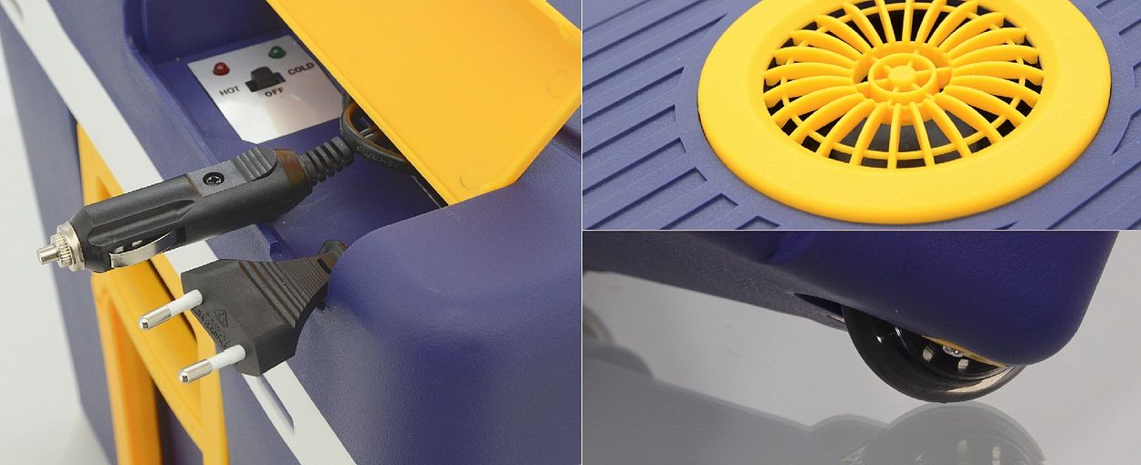 Przenośna skrzynka chłodząca z możliwością ogrzewania, zasilana z gniazda zapalniczki samochodowej 12 V lub ze standardowego gniazda 230 V. Produkt jest również wyposażony w tryb ogrzewania, w którym możliwe jest utrzymanie temperatury 50 - 65 ° C wewnątrz skrzynki. Skrzynka chłodząca jest bardzo łatwa do przenoszenia, jest również wyposażona w kółka i przedłużony uchwyt ułatwiający transport. Kable zasilające są umieszczone w wygodnym zamykanym pudełku bezpośrednio w pokrywie, dzięki czemu są zawsze pod ręką, ale nigdy nie przeszkadzają.