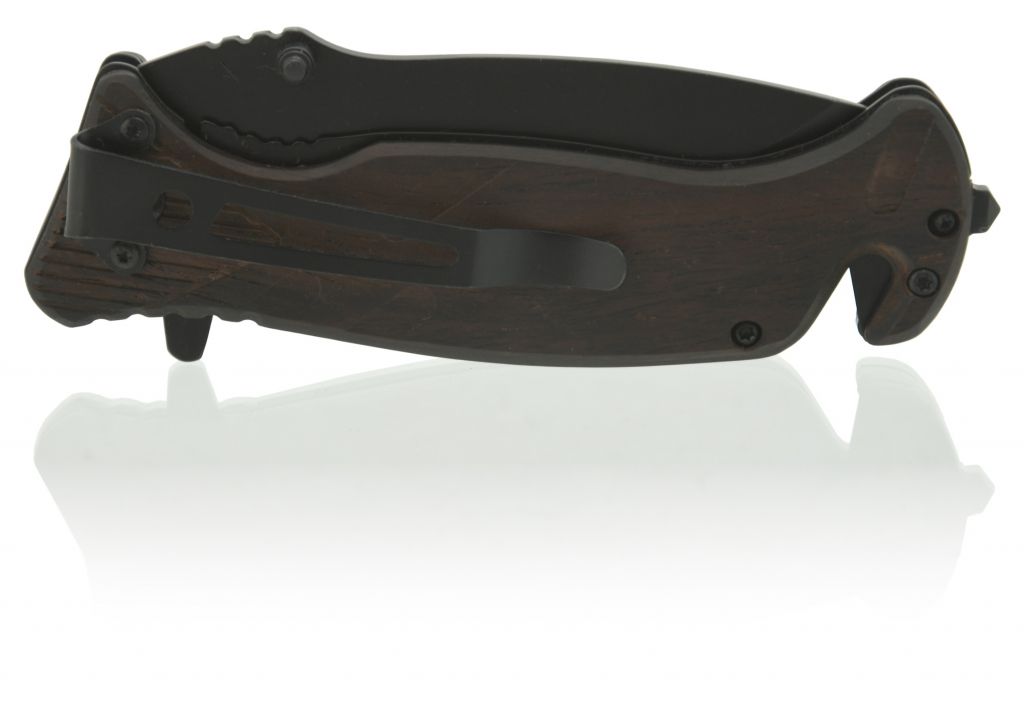 Ostrze noża wykonane jest ze stali tnącej SS420, materiał osiąga twardość HRC50-52. Powierzchnia ostrza jest pomalowana na czarno. Dzięki występom na górnej części ostrza lub występowi na dolnej stronie możliwe jest szybkie otwarcie noża jedną ręką. Nóż wyposażony jest w blokadę bezpieczeństwa, która sterowana jest bocznym ruchem kciuka w dolnej części rękojeści. Uchwyty rękojeści doskonale imitują drewno i są wygodne w trzymaniu. Nóż wyposażony jest w inne akcesoria do różnych zastosowań. Zawiera klucz do nakrętek 6/8/10/12 mm z przodu noża i tylny przecinak z tyłu, którego można używać jako krzesiwa lub gwizdka wraz z radełkowaną górną częścią ostrza.