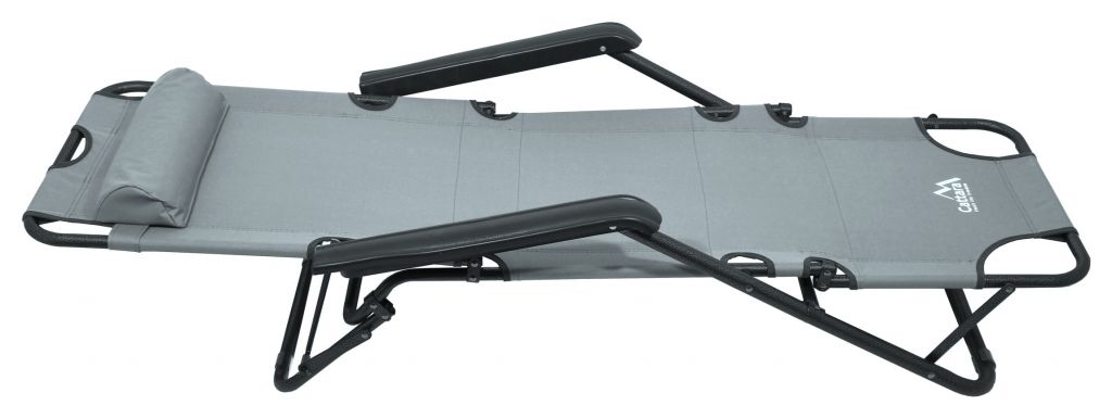 Leżak składany Comfort może być używany w sposób konwencjonalny lub można go złożyć w fotel wędkarski, który doceni każdy entuzjasta outdooru. Leżak wyposażony jest w poduszkę o regulowanej wysokości i podłokietniki dla maksymalnego komfortu.