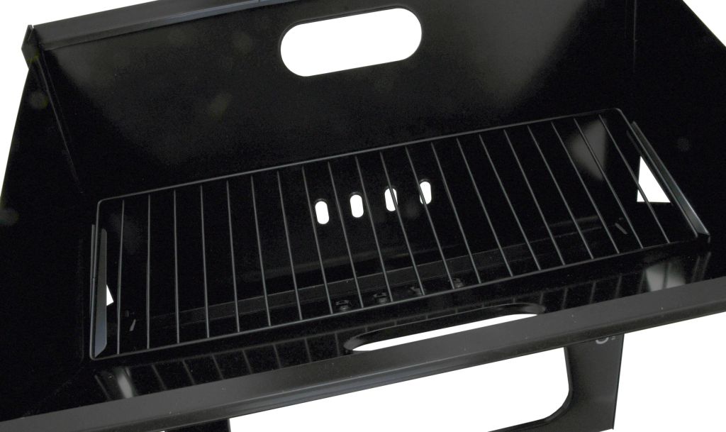 Konstrukcja wykonana jest z wysokiej jakości stali o czarnej emaliowanej powierzchni. Stabilność zapewnia krzyżowa konstrukcja korpusu grilla. Wymiary grilla 43 x 28 x 37 cm. Do termicznego przygotowania przysmaków grill wyposażony jest w ruszt stalowy o powierzchni 42,5 x 26 cm na wysokości 36,5 cm. Wentylacja z przodu i z tyłu konstrukcji zapewnia płynny dopływ powietrza. Grill można łatwo złożyć w celu łatwego przenoszenia. Wymiary przesyłki to 46 x 44 x 3 cm.