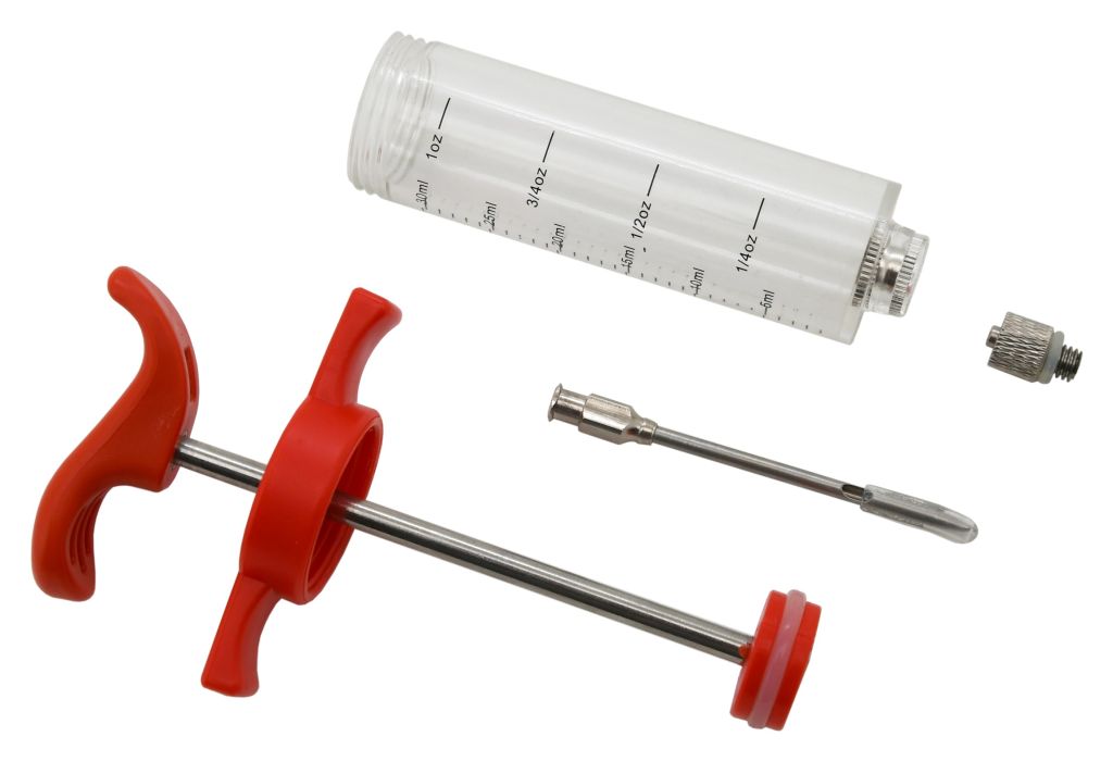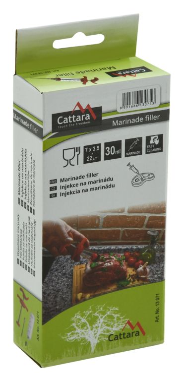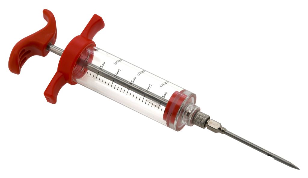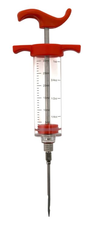 Strzykawka do marynat do idealnych dań mięsnych. Strzykawka o pojemności 30 ml, o wymiarach 7 x 3,5 x 22 cm. Konstrukcja jest w pełni rozkładana, dzięki czemu po użyciu bardzo łatwo ją umyć. Strzykawka znacznie ułatwi napełnienie mięsa marynatą, a także pozwoli skosztować miejsc, do których smak przypraw itp. nie dostanie się w innych warunkach. Dzięki tej metodzie aplikacji marynaty znacznie skrócisz czas przygotowania przygotowanych posiłków niż przy zwykłej metodzie marynaty.