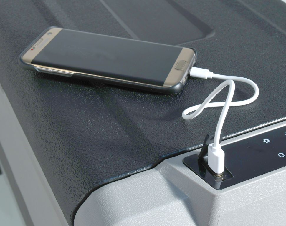 Obudowa zewnętrzna wykonana jest z wytrzymałego szarego tworzywa sztucznego, które wraz z doskonałą izolacją PU zapewnia długoterminową stabilną temperaturę wewnątrz skrzynki i gwarantuje bardzo niskie zużycie energii. Obudowa panelu sterowania jest uzupełniona zakrytym gniazdem USB do zasilania urządzeń ze złączem USB.