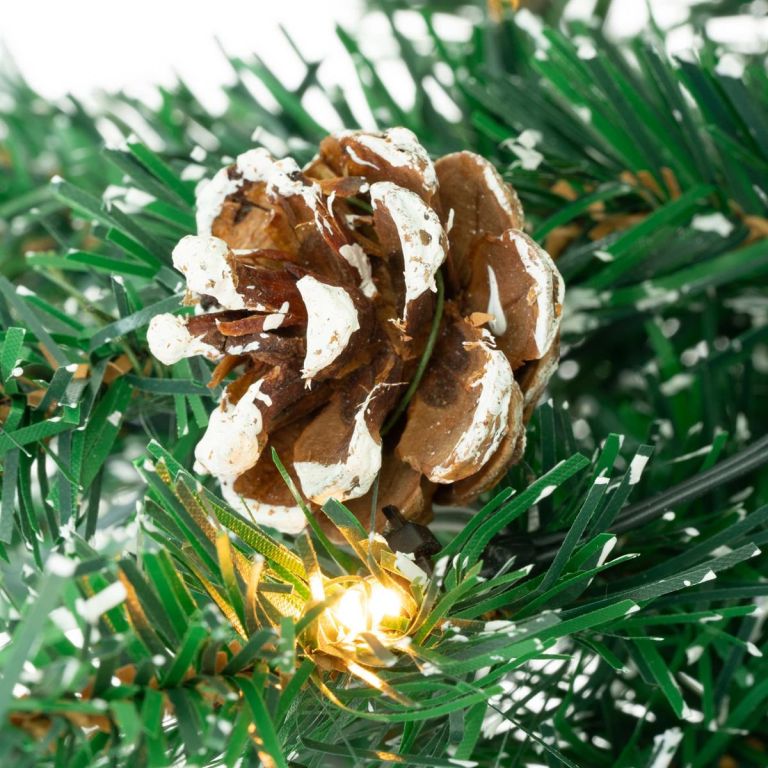 Mała praktyczna sztuczna choinka z oświetleniem upiększa każde wnętrze. Jest umieszczony w woreczku jutowym, bardzo pięknie ozdobiony szyszkami sosnowymi i jagodami, i jest pokryty sztucznym śniegiem. Drzewo jest również uzupełnione o 50 świateł.