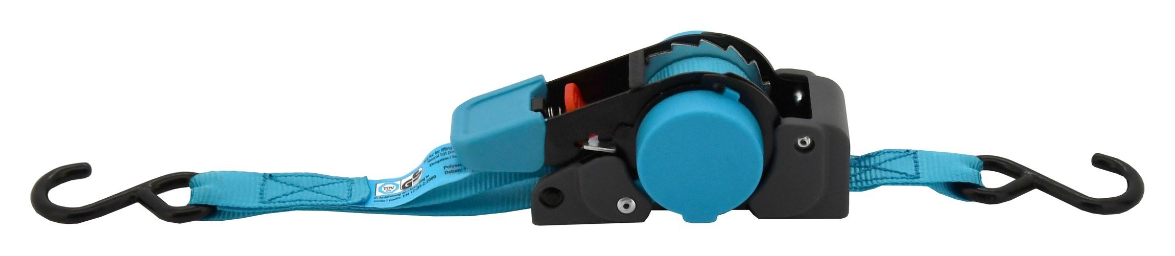 Wysokiej jakości samozwijający się pas mocujący z atestem TÜV/GS i siłą rozciągającą 100 daN.