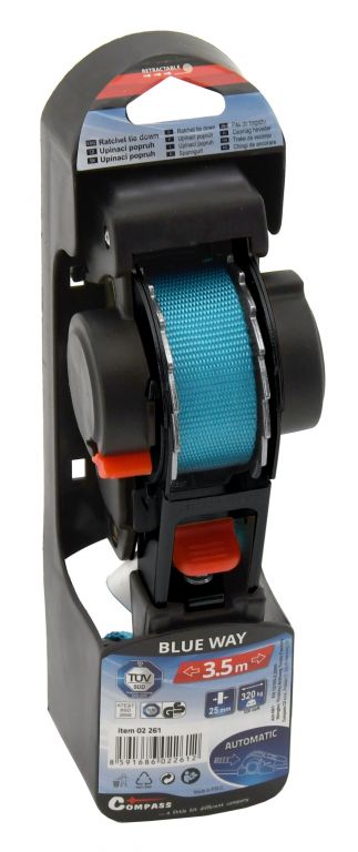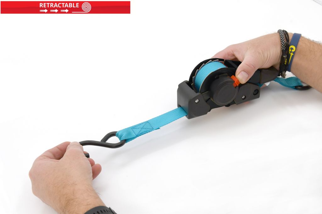 Do zaciskania służy całkowicie metalowa grzechotka z mechanizmem blokującym. Grzechotka wyposażona jest również w mechanizm samozwijający, który po naciśnięciu przycisku zwija pasek na całej jego długości. Na końcach pasków znajdują się metalowe haczyki z utwardzoną powierzchnią z tworzywa sztucznego.