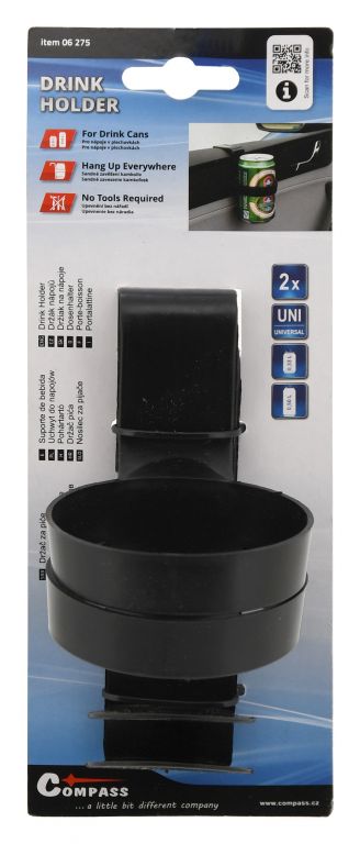 Zestaw dwóch praktycznych plastikowych uchwytów na napoje. Uchwyty są uformowane z elastycznego plastiku, część wisząca jest wzmocniona z tyłu, aby zapewnić większą wytrzymałość. Do mocowania nie są wymagane żadne narzędzia, uchwyty nadają się do montażu za bocznymi uszczelkami drzwi pojazdu.