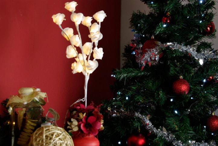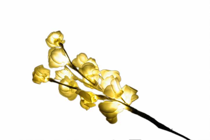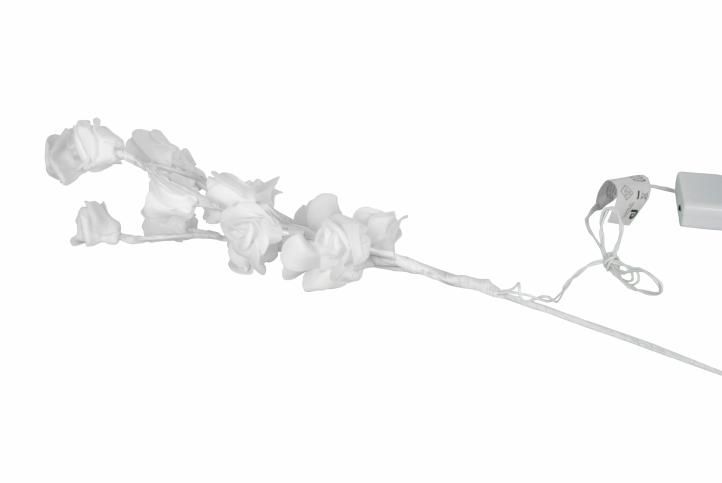 Elegancka gałązka z precyzyjnie wypracowanymi różyczkami. Dzięki 16 LED diodom, które świecą ciepłym białym światłem , ta dekoracja wnosi do Waszego domu przepiękny czar. Gałązka dzieli się dalej na 4 części. Dzięki zasilaniu z baterii nie trzeba obmyślać dostępu do gniazdka elektrycznego.