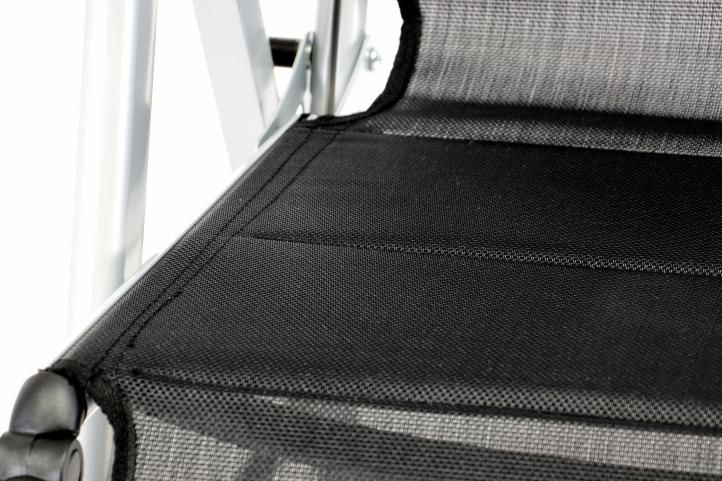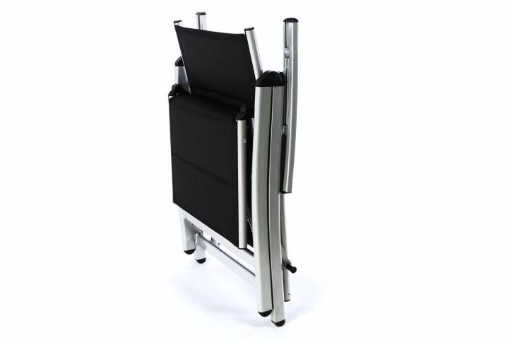 Luksusowe składane krzesło z wygodną wyściółką i siedzeniem zapewnia komfort na tarasie lub campingu.Regulowane metalowe poręcze (ustawialne do 7 różnych pozycji) i bardzo szerokie nóżki zapewniają długi okres eksploatacji. Tego model można użyć nietylko jako krzesła relaksacyjnego ,ale także jako leżaka do opalania. Bardzo jakościowa materia (PCW - poliestr pokryty)jest odporny na warunki atmosferyczne a szwy są zgrzewane. Materia zapewnia optymalną wentylację na siedzeniu i oparciu. Luźno naciągnięta materia dopasowuje się indywidualnie do kształtu pleców. Można wykorzystać : na tarasie, w ogrodzie, na balkonie, na basenie lub na campingu.