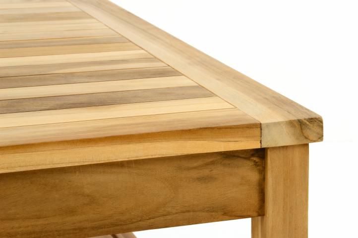Drewno teakowe jest bardzo odporne na warunki atmosferyczne i dlatego nadaje się do użytku na zewnątrz. Nietraktowane drewno tekowe po pewnym czasie zyska słynną srebrnoszarą patynę. Jeśli nie chcesz tego efektu, powinieneś malować leżak olejem teakowym, który jest również dostępny w naszym sklepie.