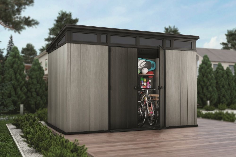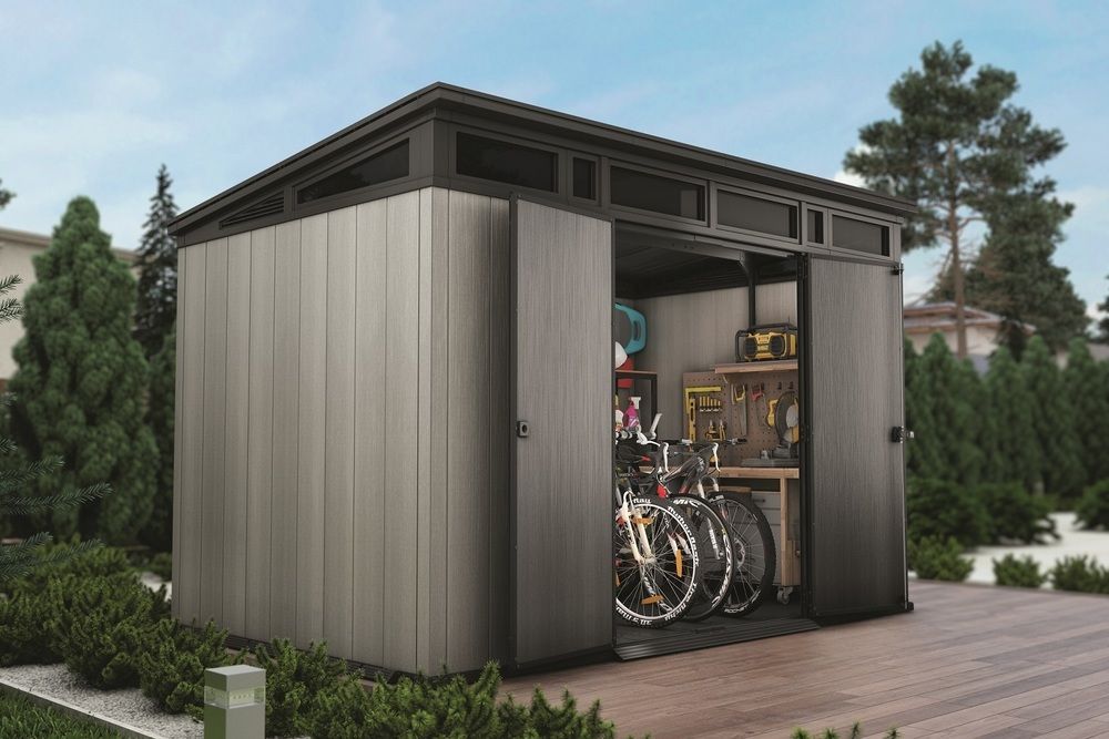 Domek ma wysokiej jakości materiał odporny na niekorzystne warunki atmosferyczne. Domek jest idealny nie tylko do przechowywania narzędzi i akcesoriów ogrodowych, ale także do kosiarki lub grilla. Jego głównymi zaletami są stabilna, wzmocniona stalowa konstrukcja, solidny dach i szerokie podwójne drzwi.