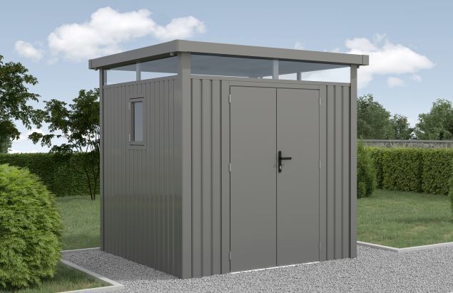 Domek ogrodowy o nowoczesnym designie pasuje do każdego ogrodu. Dom posiada dwuskrzydłowe drzwi, które można zamknąć. Wykonane z wysokiej jakości blachy stalowej o grubości 0,4 mm oraz wysokiej jakości ocynkowanej ramy stalowej o grubości 0,5-1,2 mm. Maksymalne obciążenie śniegiem dachu wynosi 60 kg/m2. Jedno otwierane okno. Prześwitujące górne partie paneli. System szybkiego odprowadzania wody deszczowej. Brak podłogi.