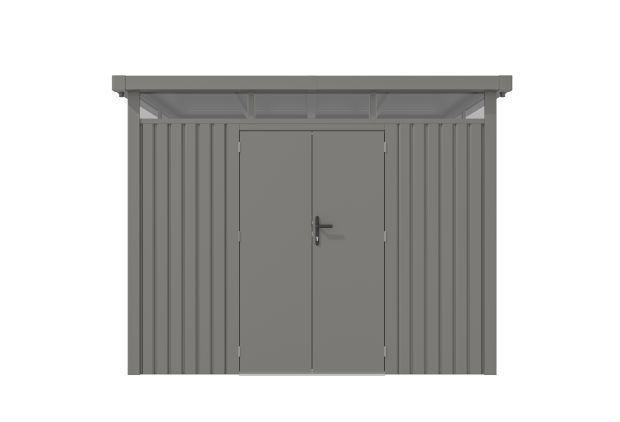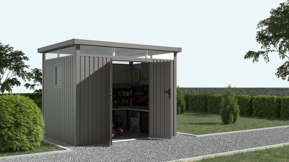 Domek ogrodowy o nowoczesnym designie pasuje do każdego ogrodu. Dom posiada dwuskrzydłowe drzwi, które można zamknąć. Wykonane z wysokiej jakości blachy stalowej o grubości 0,4 mm oraz wysokiej jakości ocynkowanej ramy stalowej o grubości 0,5 - 1,2 mm. Maksymalne obciążenie śniegiem dachu wynosi 60 kg/m2. Jedno otwierane okno. Prześwitujące górne partie paneli. System szybkiego odprowadzania wody deszczowej.
