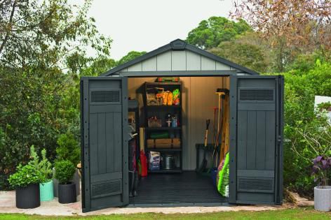 To bezobsługowy dom z tworzywa sztucznego, który można pokochać Domki te są doskonałym i inteligentnym rozwiązaniem do przechowywania w ogrodzie Wygodne poruszanie się w domku zapewniają duże okna przez które dochodzi mnóstwo światła. Kratka wentylacyjna dostarcza świeże powietrze i pozostawione rzeczy pozostają suche. Domki te charakteryzują się wysoką jakością, wzornictwem i ekstremalną stabilnością dzięki metalowym wzmocnieniom konstrukcji.