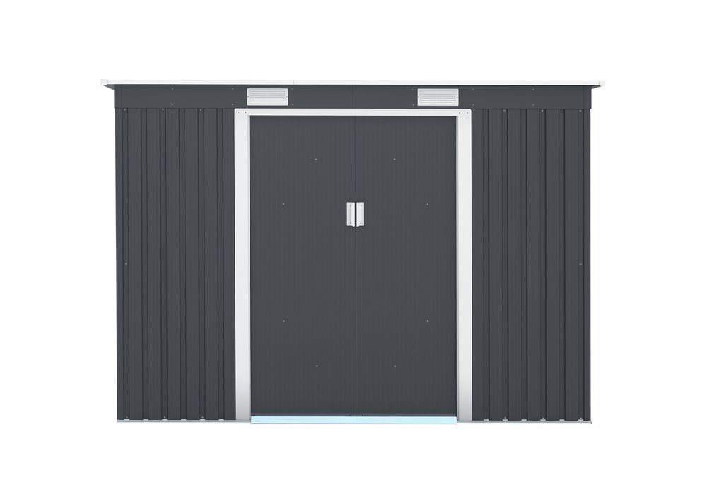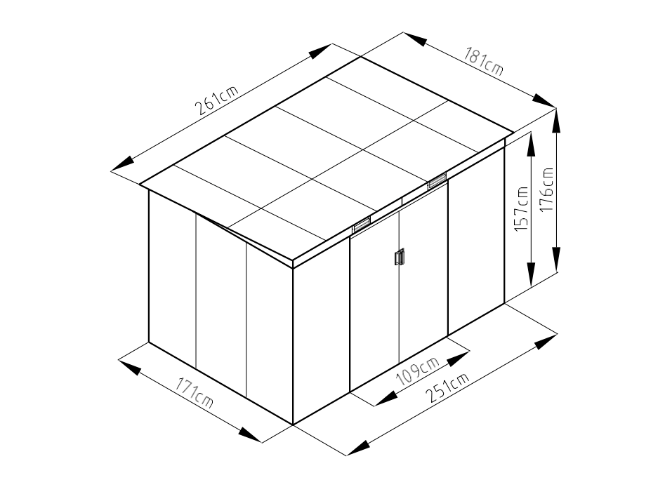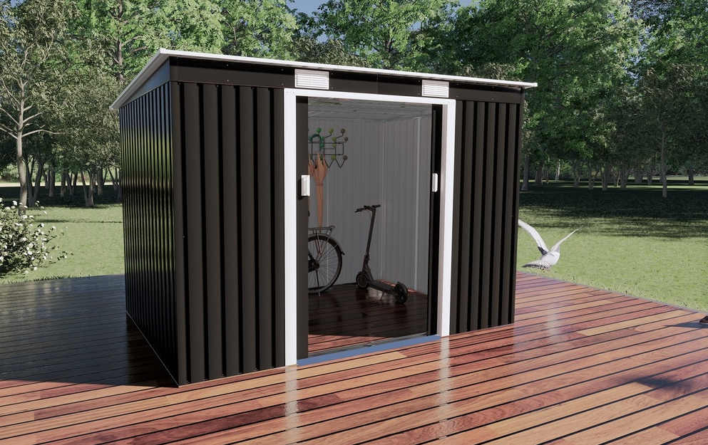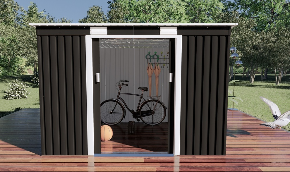 Z domku ogrodowego wykonasz np. narzędzia ogrodnicze, rowery, kosiarki, akcesoria basenowe itp. Dzięki podwójnym drzwiom przesuwnym będziesz miał wygodny dostęp.