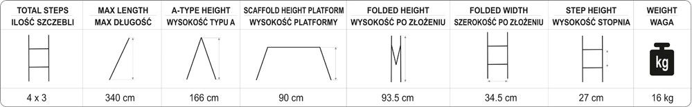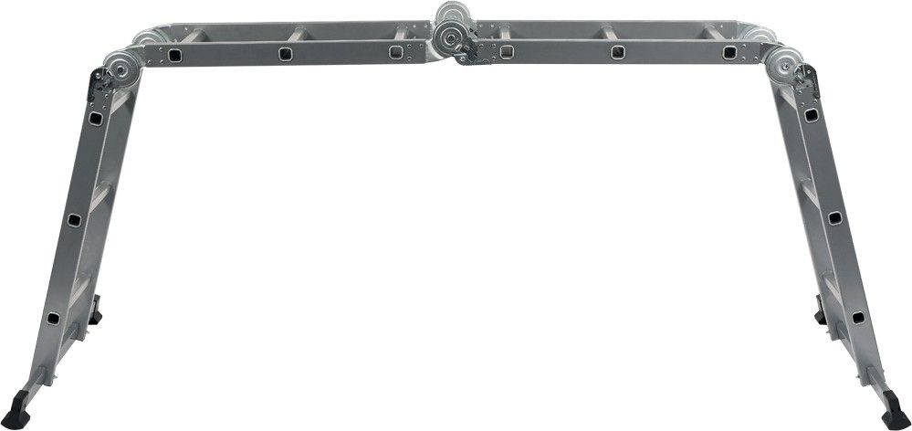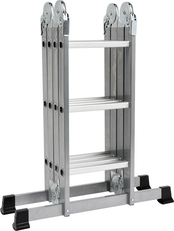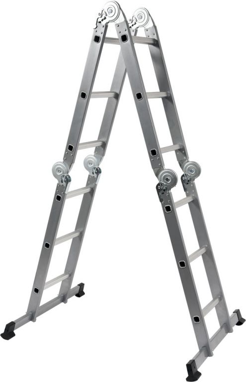Wielofunkcyjna składana drabina spełnia europejską normę EN131. Składa się z czterech segmentów połączonych stałymi połączeniami. Wszystkie połączenia mają zamki, które ułatwiają zmianę konfiguracji drabiny. Boki drabiny wykonane są z profili stalowych, które są mocniejsze niż aluminium o tej samej konstrukcji. Ścianki są wtedy aluminiowe, a ich powierzchnia jest antypoślizgowa. Po obu stronach drabiny znajduje się gumowy stabilizator stopy, zapewniający wysoką stabilność. Drabina jest łatwa do transportu lub przechowywania.