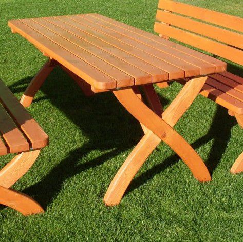 Masywny stół wykonany z twardego drewna sosnowego, niewrażliwym i odpornym na warunki atmosferyczne, idealnie nadającym się do budowy mebli ogrodowych. Stoły są wyrobione z drewna sosnowego najwyższej jakości (certyfikowanego). Jest idealny na ogród lub taras. Produkt posiada certyfikat FSC. Certyfikat FSC to gwarancja, że firma zaopatruje się w surowiec pochodzący z lasów, spełniających najwyższe standardy.