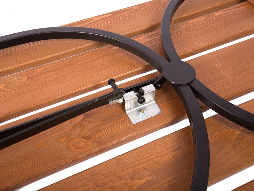 Zestaw mebli ogrodowych z twardego drewna sosnowego oferuje wszystko, co potrzebne jest do ogrodu lub na taras. Meble są wyrobione z drewna sosnowego najwyższej jakości (certyfikowanego). Produkt posiada certyfikat FSC. Certyfikat FSC to gwarancja, że firma zaopatruje się w surowiec pochodzący z lasów, spełniających najwyższe standardy. Drewno jest impregnowane w kolorze dębowym i jeszcze lakierowane.