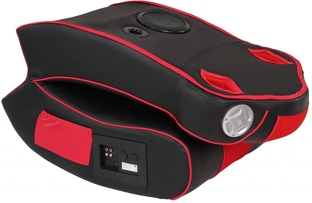 W fotelu zintegrowany jest system subwoofera. Po prawej stronie znajdziesz elementy sterujące basami i głośnością. Jest też zintegrowana mała kieszonka, do której można włożyć np. Smartfona lub trochę słodyczy. Wygodny, dobrze wyściełany fotel multimedialny ze zintegrowanym nagłośnieniem. Możliwość sterowania wbudowanym systemem dźwiękowym za pomocą konsoli.