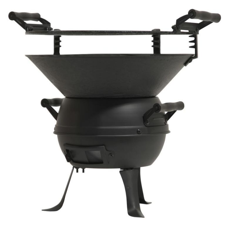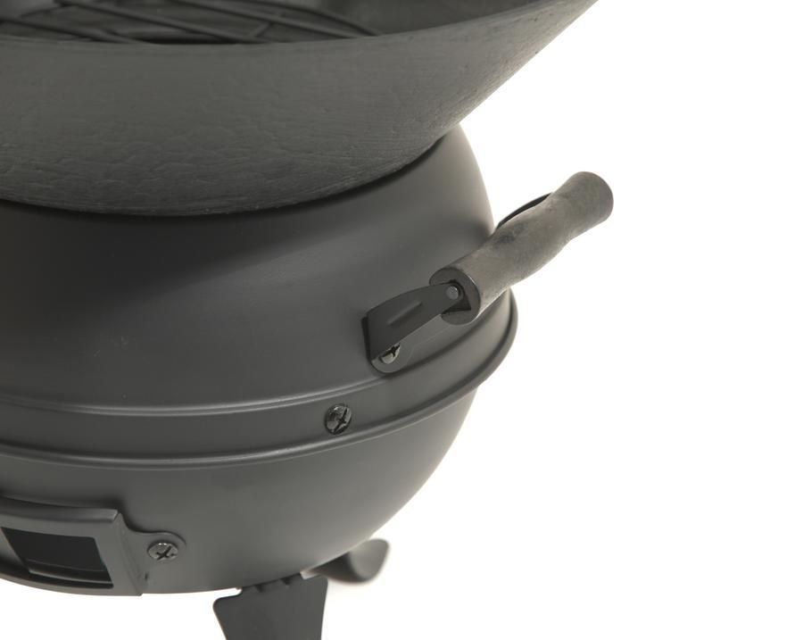 Konstrukcja wykonana jest z żeliwa o czernionej powierzchni. Drewniane rączki zapewniają wygodny uchwyt do regulacji rusztu lub przenoszenia całego urządzenia. Stabilność zapewniają trzy metalowe nóżki przymocowane do grilla w dolnej części. Grill jest również wyposażony w regulowaną wentylację w dolnej części. Grill jest wyposażony w żeliwny ruszt o regulowanej wysokości, na którym można przyrządzać smakołyki.