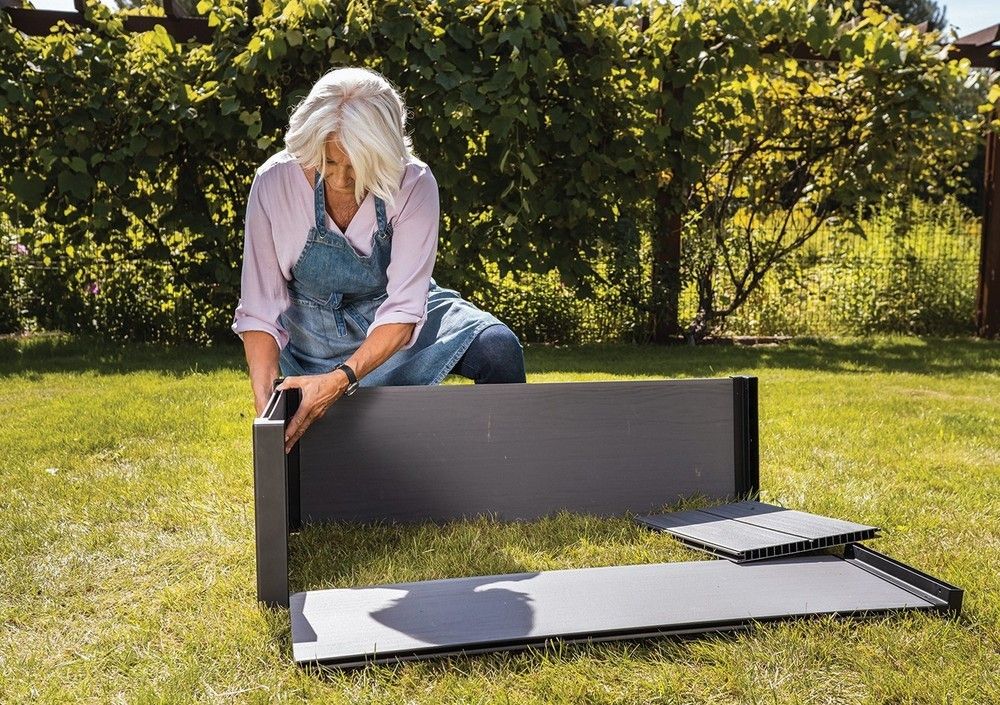 Materiał Evotech jest wytwarzany w sposób świetnie imitujący drewno, więc produkt będzie doskonale pasował do każdego ogrodu. Grządka służy przede wszystkim jako atrakcyjna, ochronna i podwyższona rabata wokół Twoich kwiatów i warzyw w gruncie.