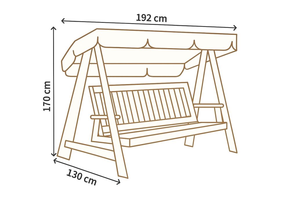 Huśtawka ogrodowa 3-osobowa, sosnowa, 192 cm, z dachem