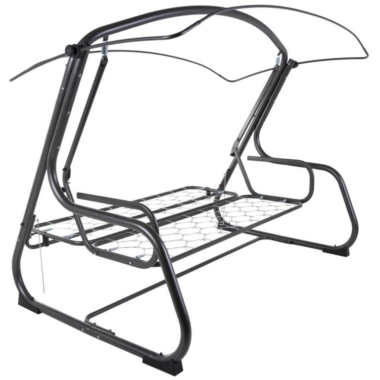 Bardzo luksusowa huśtawka ogrodowa zapewniająca maksymalny relaks w ogrodzie. Możliwość pościeli. Swing ma bardzo ładny design - model 06049-03. Solidna i stabilna konstrukcja metalowa o długiej żywotności. Metalowa huśtawka dla 4 osób, wielkość poduszki: (2x) 175x54x8-10cm, rozmiar małej poduszki: 30x40x15cm, średnica rury: ø50x1,5mm