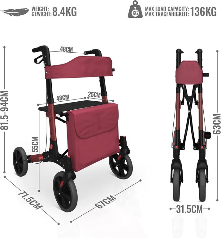 Wraz z wiekiem mobilność jest znacznie osłabiona przez np. osłabienie i brak równowagi. Stabilny składany chodzik czterokołowy.