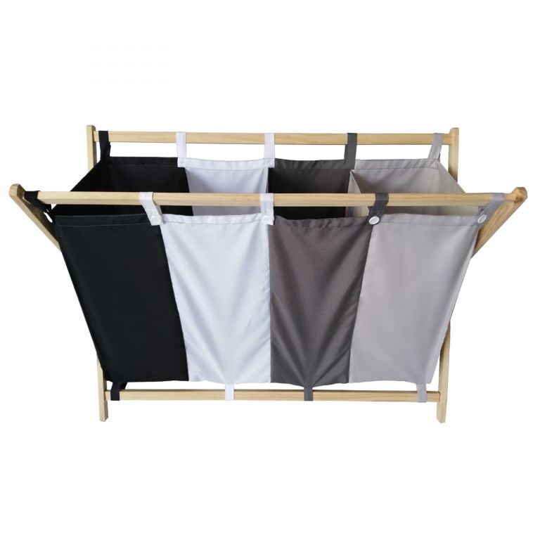 Wreszcie można zaprowadzić porządek w łazience lub pralni. Worki na pranie wykonane są z wysokiej jakości i wytrzymałego poliestru i są po prostu zawieszone na solidnej drewnianej ramie. Bardzo praktyczny pomocnik, który ułatwi Ci pranie. Posiada 4 praktyczne worki na pranie w 4 kolorach.