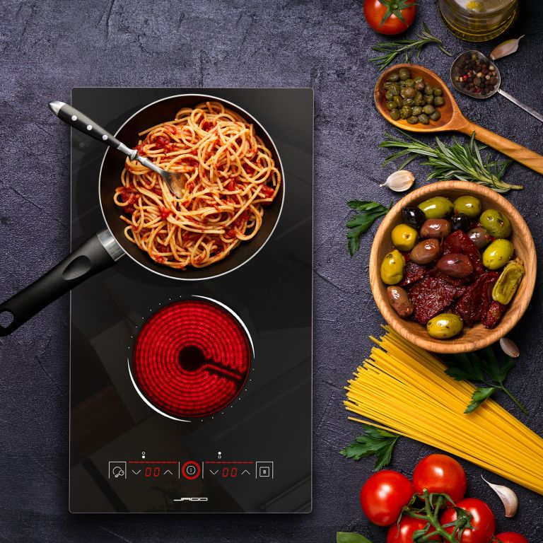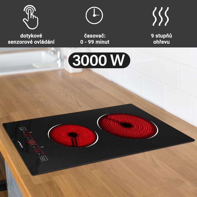 Do wbudowana płyta szklano-ceramiczna z dwiema strefami gotowania (Domino). Nadaje się do wszystkich rodzajów naczyń kuchennych (ceramika, stal nierdzewna, żelazo, aluminium, miedź, szkło żaroodporne itp.). Posiada technologię sterowania dotykowego i dziewięciostopniową regulację temperatury. Z kablem (linia trzyżyłowa) z wtyczką VDE. Funkcje bezpieczeństwa: Zabezpieczenie przed dziećmi, wskaźnik ciepła resztkowego, Zabezpieczenie przed przegrzaniem, automatyczne wyłączanie. Proste i intuicyjne sterowanie, dziewięć poziomów mocy i minutnik od 0 do 99 minut sprawiają, że ta szklana płyta ceramiczna jest idealnym sprzymierzeńcem na lata przyjemności gotowania.