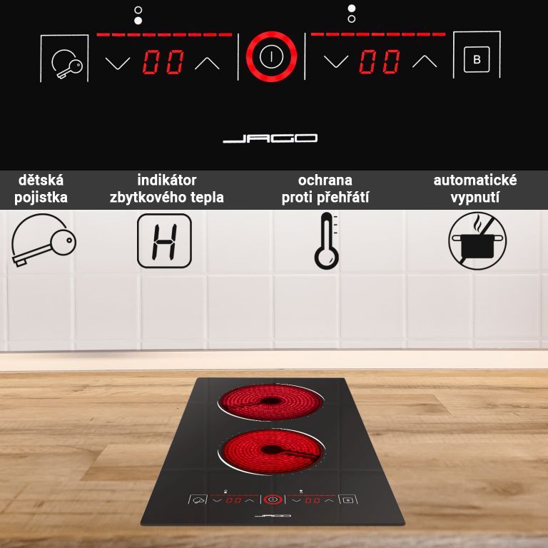 JAGO Płyta szklano-ceramiczna, 1200/1800 W