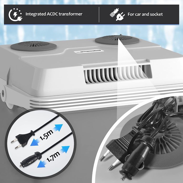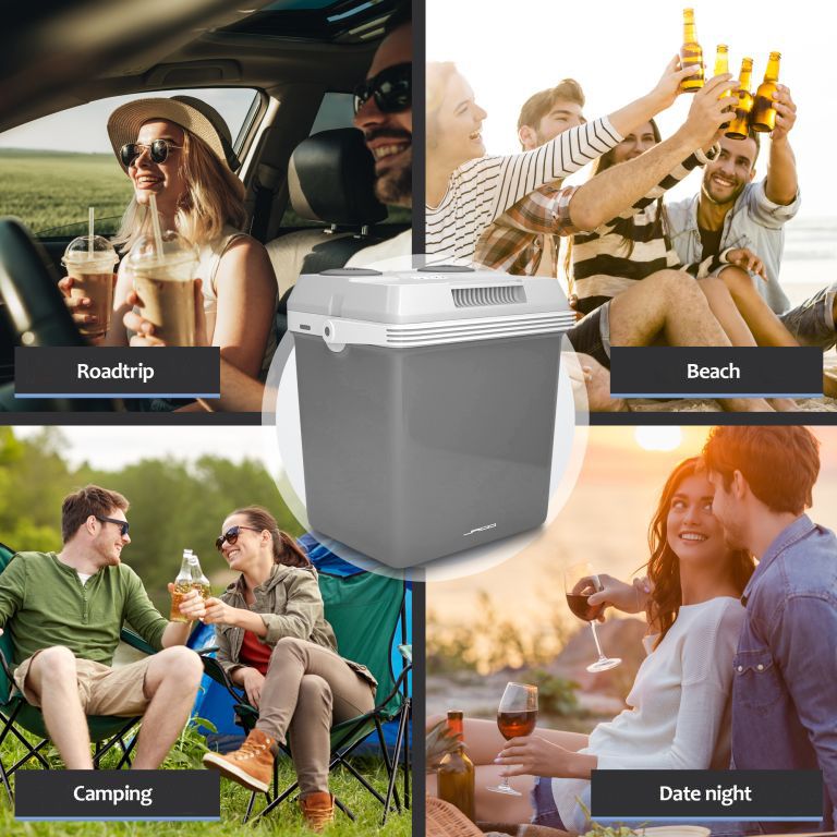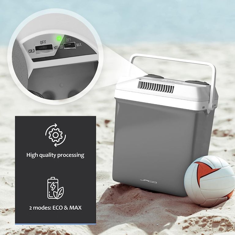 Box chłodzący ma pojemność 25 litrów, dzięki czemu można w niej przechowywać ciepłe lub zimne jedzenie i napoje na kempingu lub podczas pieszych wycieczek. Pojemnik posiada wiele przyjaznych dla użytkownika funkcji, takich jak zintegrowany uchwyt, dwa różne złącza zasilania (normalne i samochodowe) oraz dwukierunkowy system otwierania pokrywy. Jest wyposażony w program ECO, który zużywa mniej energii, a izolacja C5H10 utrzymuje stabilną temperaturę wewnątrz przez dłuższy czas. Wykonany jest z wysokiej jakości trwałych materiałów i wytrzyma zużycie na kempingu, plaży lub w ogrodzie. Przechowywać w temperaturze od 10 do 32°C.