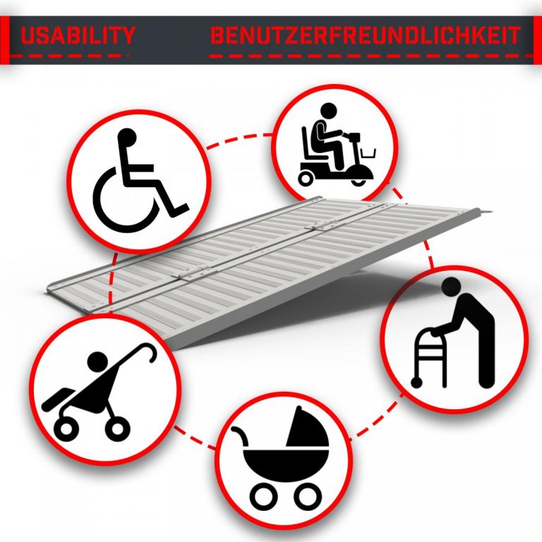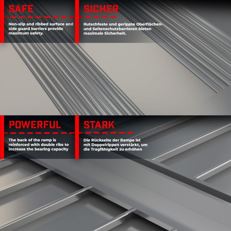 Pomoc umożliwia łatwiejszy dostęp do pojazdów i przemieszczanie się z jednej powierzchni na drugą oraz pomaga użytkownikowi odzyskać swobodę ruchów i niezależność. Jego lekka konstrukcja ułatwia transport, montaż i przechowywanie, a żebrowana powierzchnia i boczne barierki zapewniają maksymalne bezpieczeństwo.