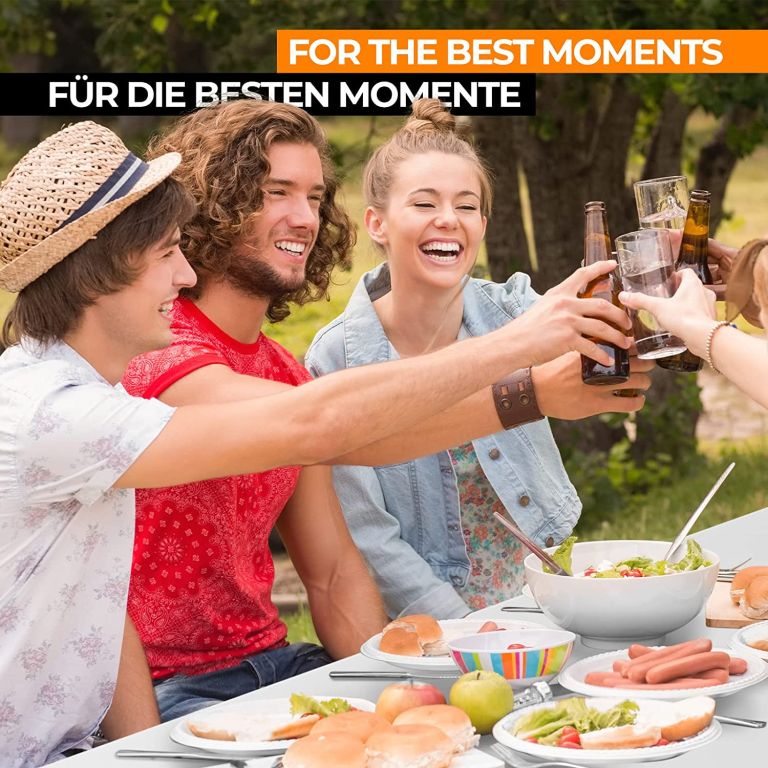 Nasz składany stół jest idealny na przyjęcie w ogrodzie z przyjaciółmi, rodzinny obiad czy przyjęcie urodzinowe dla dzieci.