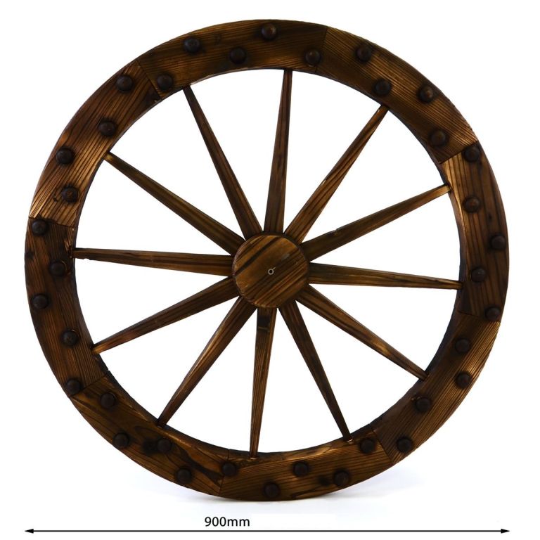Kolo jest wykonane z drewna. Piękna ozdoba do Twojego domu i ogrodu.