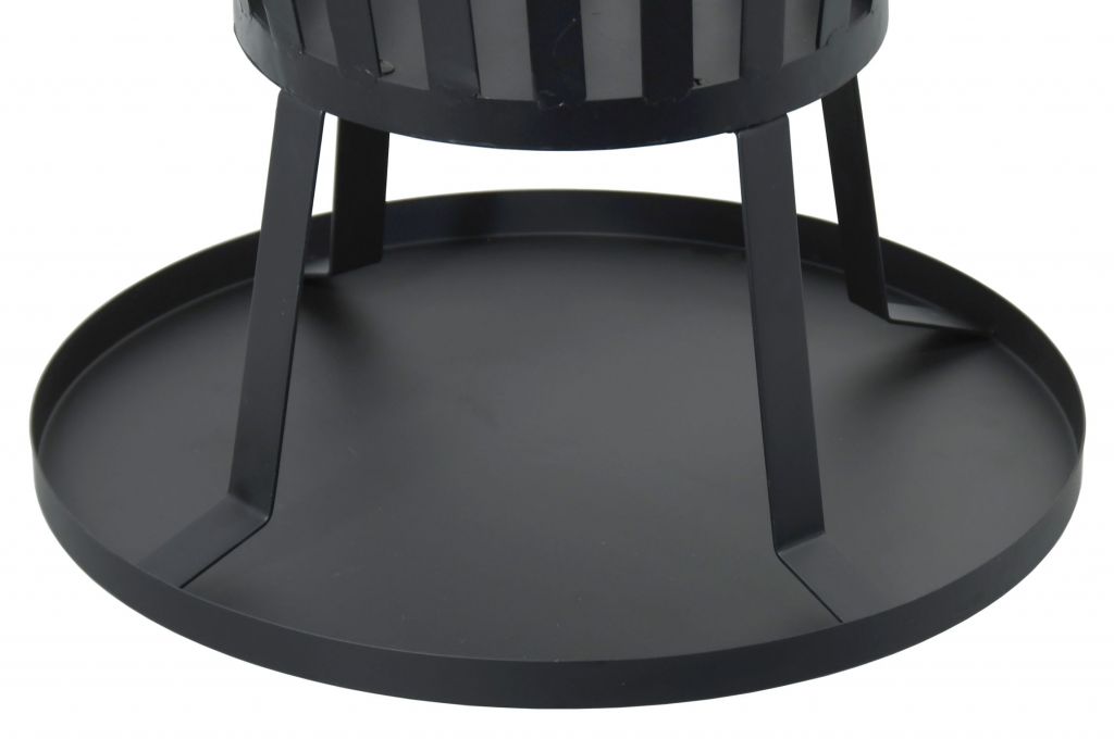 Konstrukcja kominka wykonana jest z wysokiej jakości stali o grubości 2 mm z wysokotemperaturową czarną powłoką. Czteronożny kominek uzupełnia cokół, który służy jako popielniczka, zapewniając jednocześnie wysoką stabilność.
