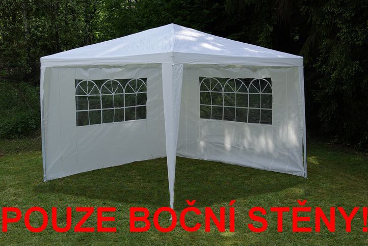 Komplet dwóch ścian z oknami do pawilonu PROFI o podstawie 3 x 3 m - biały. Ścianki łatwe w montażu za pomocą pasków na rzepy lub haczyków. Materiał wodoszczelny oddychający - poliester PA powlekany, chroniący przed wiatrem.