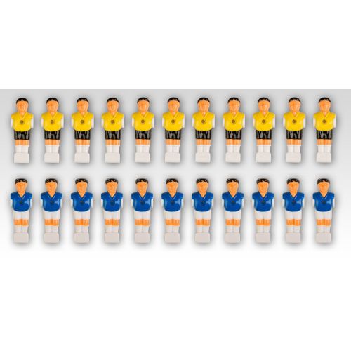 Komplet 22 piłkarzyków, 2 x 11. Pasują do naszych stołów piłkarskich oraz innych w których zastosowano prowadnice o średnicy 15,9 mm.