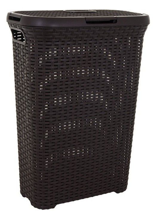 Wysokiej jakości plastikowy kosz na brudną pościel w brązowym kolorze z pokrywką. Nowoczesny wygląd rattanu. Pojemność kosza wynosi 40 litrów. Otwory do cyrkulacji powietrza Uchwyty boczne dla łatwej obsługi. Jakość i design marki CURVER.
