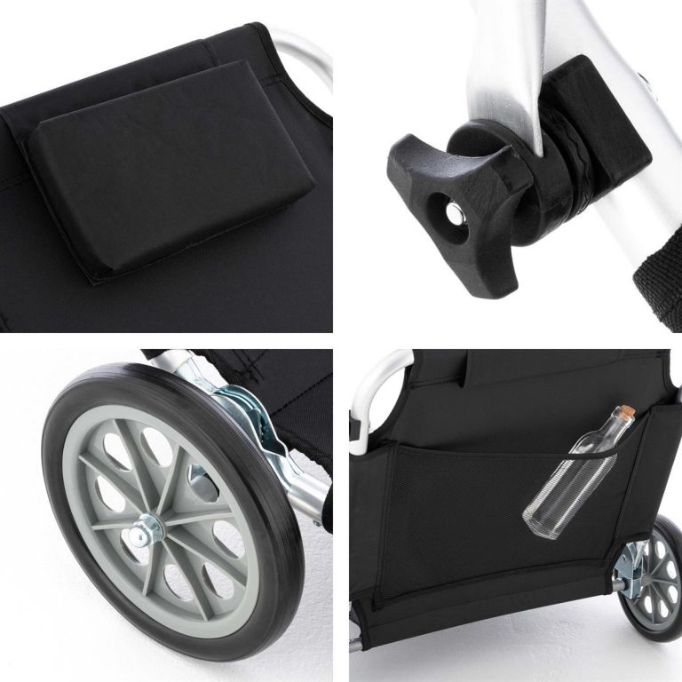 Wygodny leżak z daszkiem, który kilkoma ruchami zmienisz w wózek inwalidzki, dzięki czemu z plaży lub basenu bez problemu zabierzesz swoje rzeczy do d