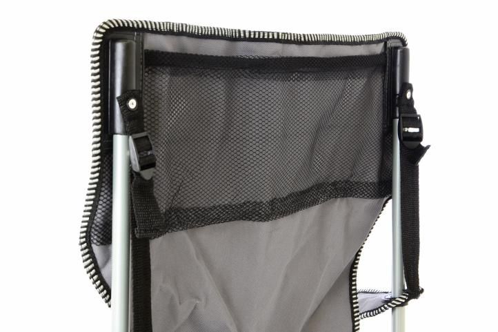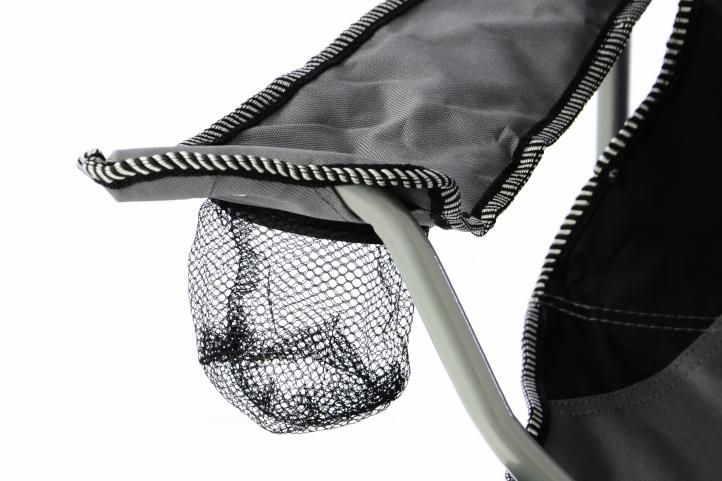 Składane krzesło jest uniwersalne: na kempingu, na pikniku, zrelaksuj się na skraju lasu lub w ogrodzie. Każda rybak, myśliwy, sportowiec lub widz docenią to krzesło dla łatwości użycia i kompaktowego rozmiaru opakowania. Praktyczny uchwyt na kubek jest zintegrowany z podłokietnikiem, w którym można oczywiście przechowywać telefon komórkowy lub inne przybory. Istnieje również zapasowa siatka akcesoriów.