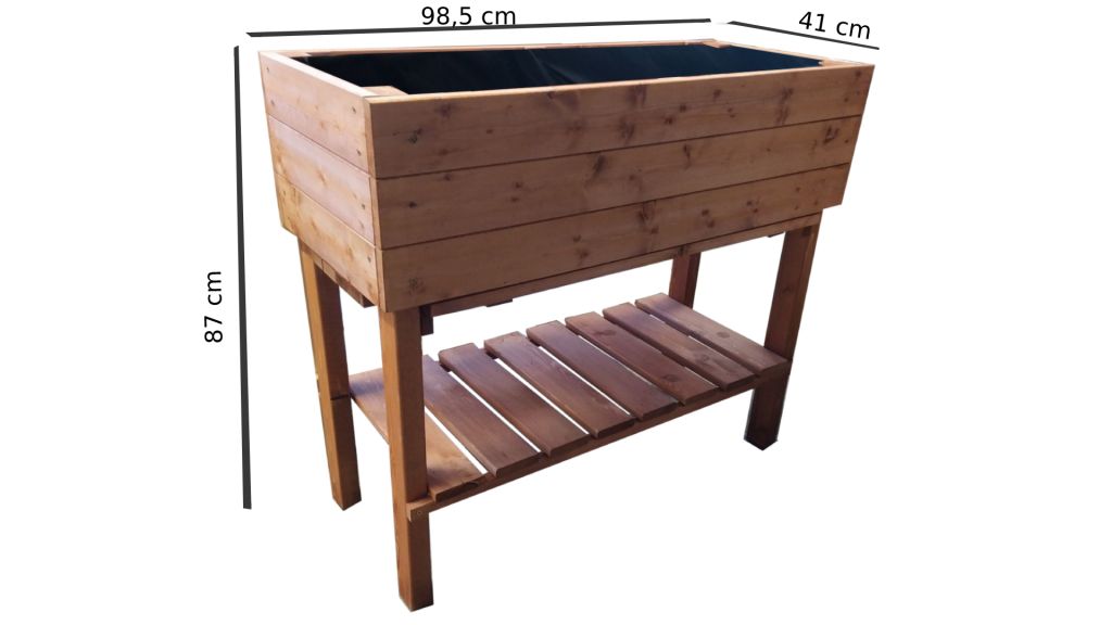 Lubisz rosnąć, ale czy zawsze przeszkadzało Ci nieprzyjemne schylanie się i klękanie? Dzięki temu kwietnikowi Twoja praca będzie łatwiejsza i bez przyjemnego schylania się i klękania. Wykonany jest z materiału o grubości 20 mm, a nogi mają grubość 40 x 60 mm. Półki do przechowywania narzędzi do uprawy i sadzenia. Geowłókniny są częścią opakowania. Doniczka od spodu posiada plastikowe podkładki dla lepszej stabilności i aby drewniane nogi nie stykały się z podłożem.