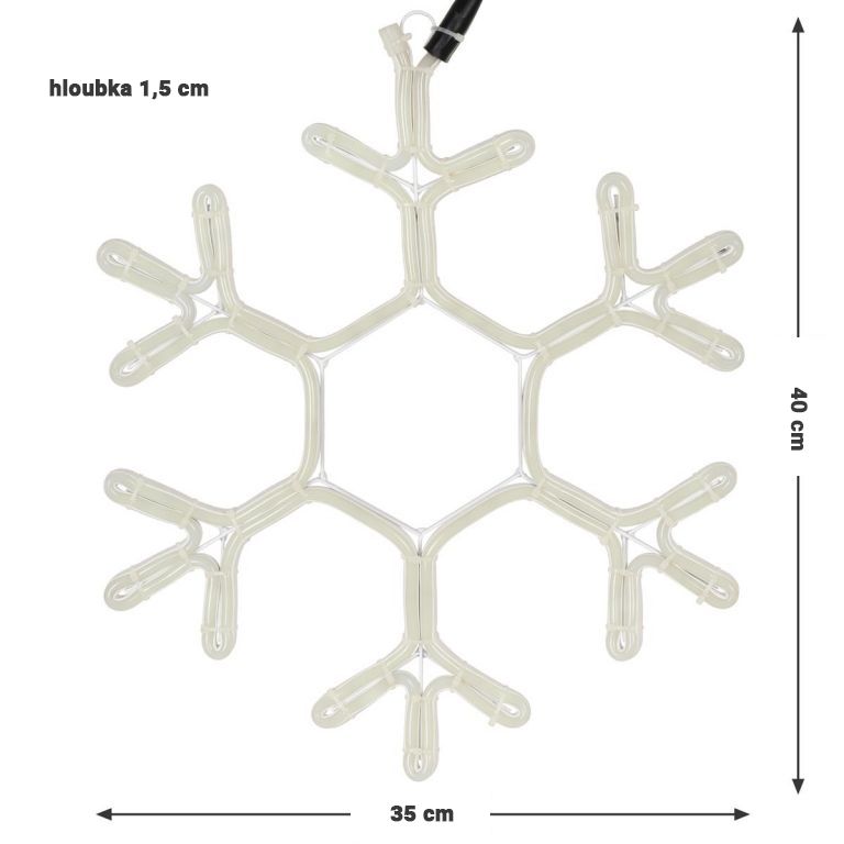 Duży płatek śniegu idealnie nadaje się jako dekoracja okienna, ale można go również zastosować na drzwiach i ścianach. Mogą być używane wewnątrz i na zewnątrz. Oświetlenie w neonowym stylu. Sprawdzony stopień ochrony IP44 zapewnia bezpieczeństwo nawet podczas użytkowania na zewnątrz.